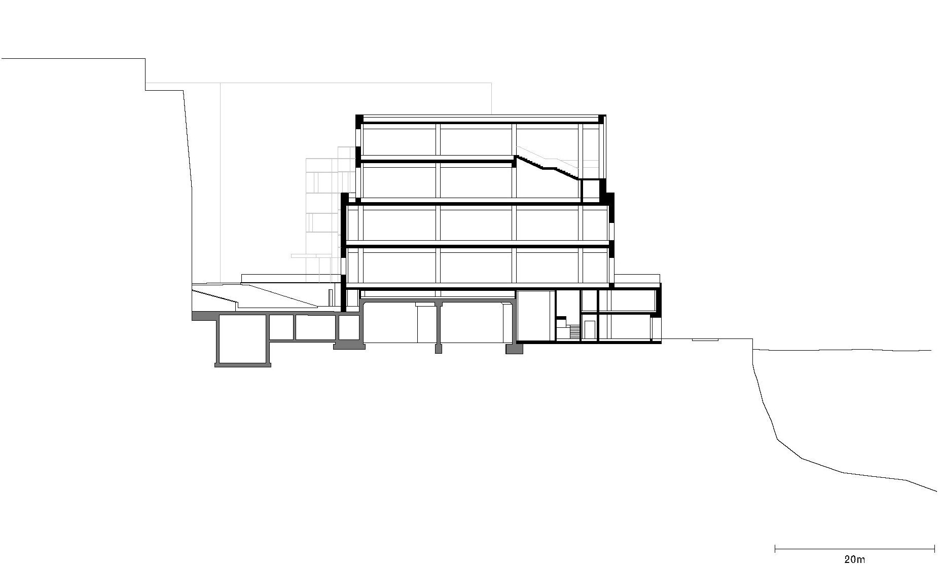 The building is composed of interlocking volumes that respond to the topography of Södermalm. Their rhythm and proportions draw on the scale of the 17th-century merchant townhouses of the Old Town across the water, allowing the building to engage with Stockholm’s historic waterfront while reading as a single, coherent structure. Together with a new terrace in front of the building, the ground floor is conceived as an extension of the public realm, highly permeable and transparent, entrances to north and south, and a public foyer with shop and restaurant. It allows a fluid transition without thresholds between city and building, anchoring the Nobel Center in everyday urban life.