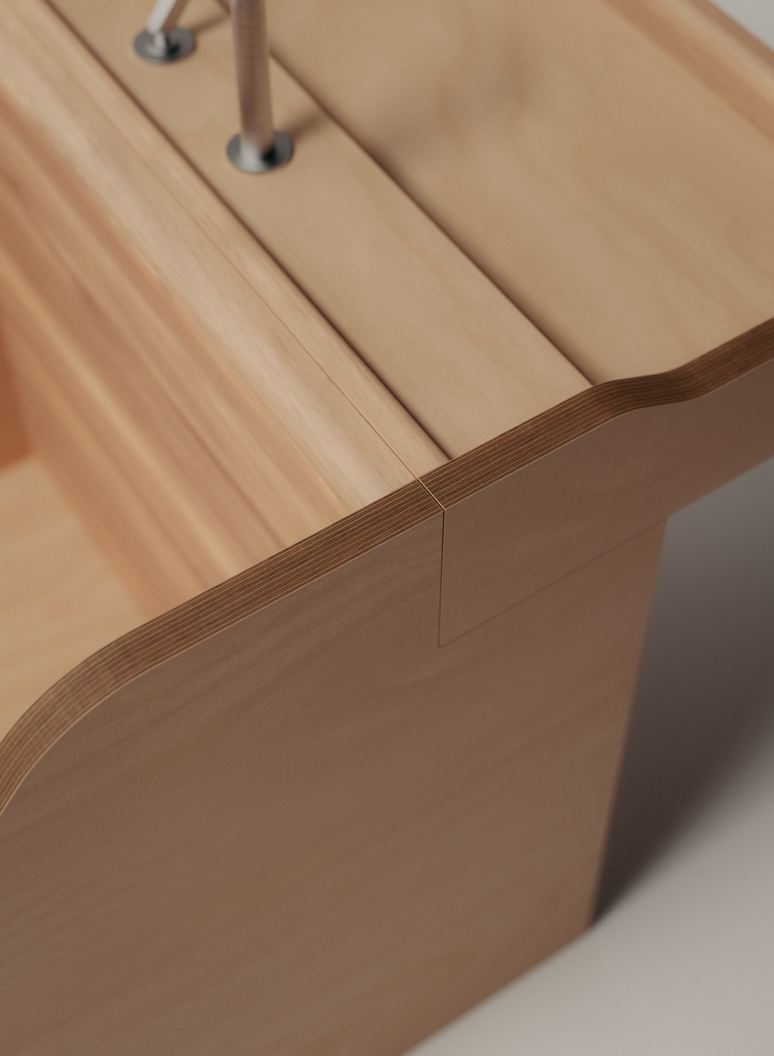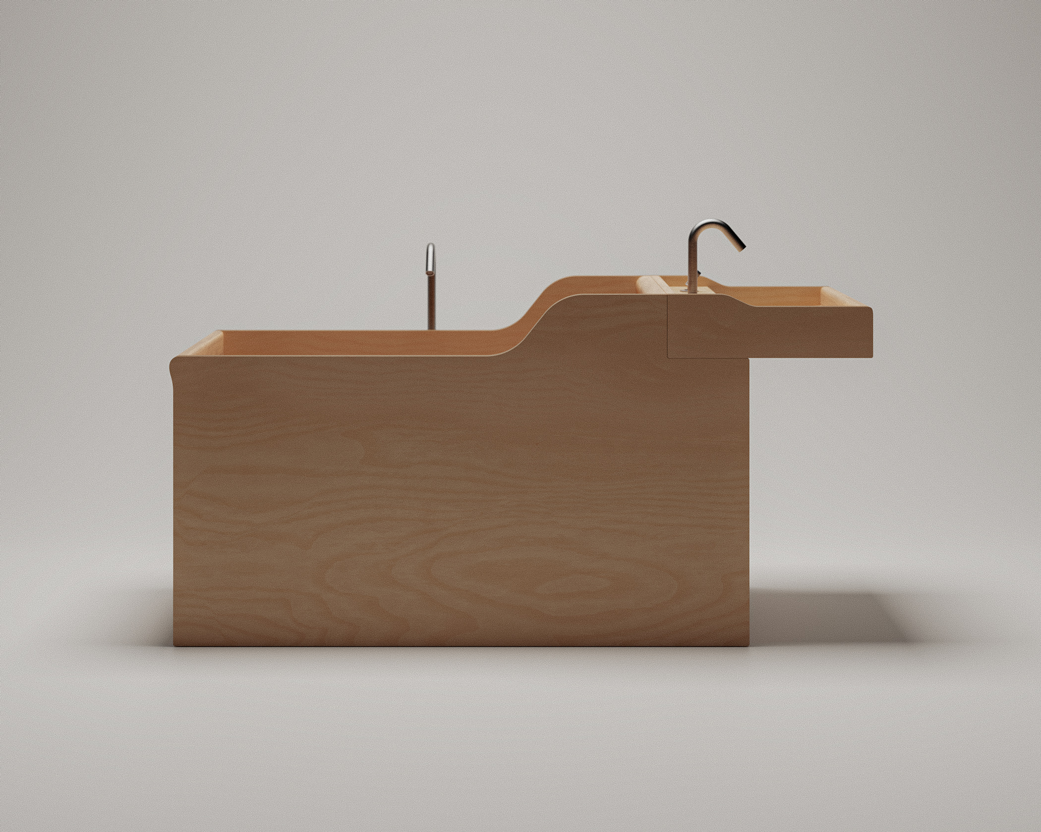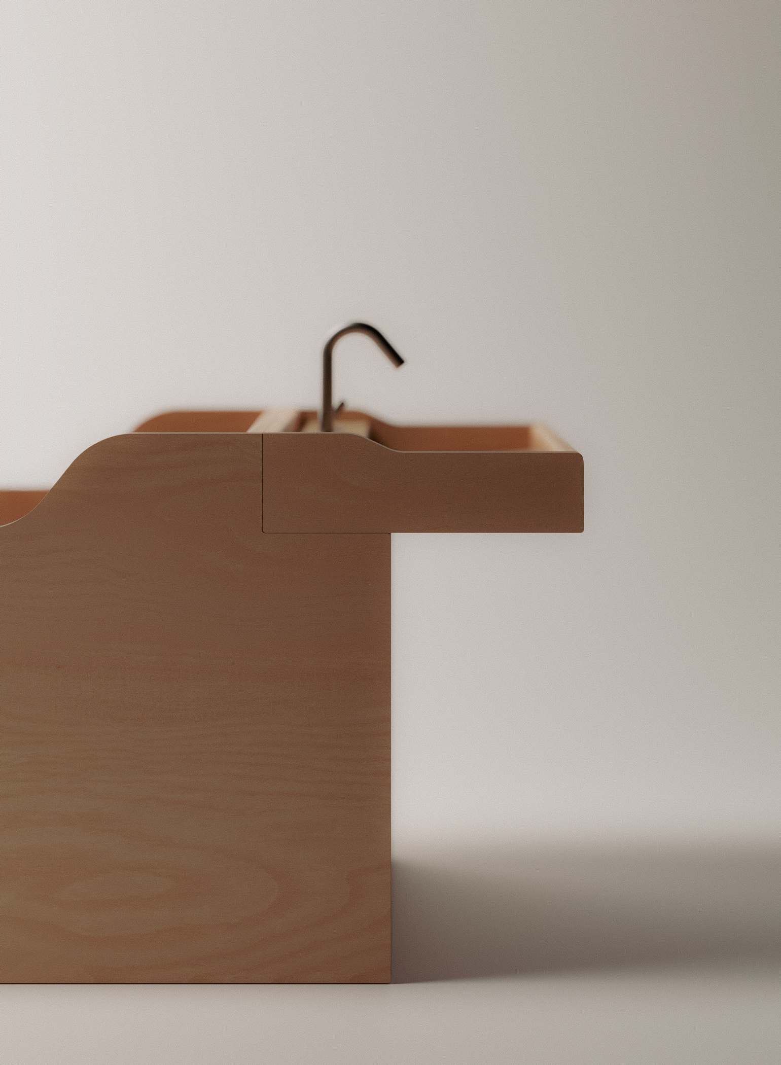 Tambre is a bathtub developed in collaboration with Agape, the first project between the Italian manufacturer and David Chipperfield Design. Taking its name from the river Tambre in Galicia, it is defined by a precise use of okumè plywood. The material’s warm tone and fine grain give the object a restrained presence, while its construction, based on flat, assembled elements, remains clearly legible. All technical components are contained within the body of the tub, allowing the exterior to remain uninterrupted. At each junction, solid wood inserts soften the transitions and reinforce the continuity of the volume.